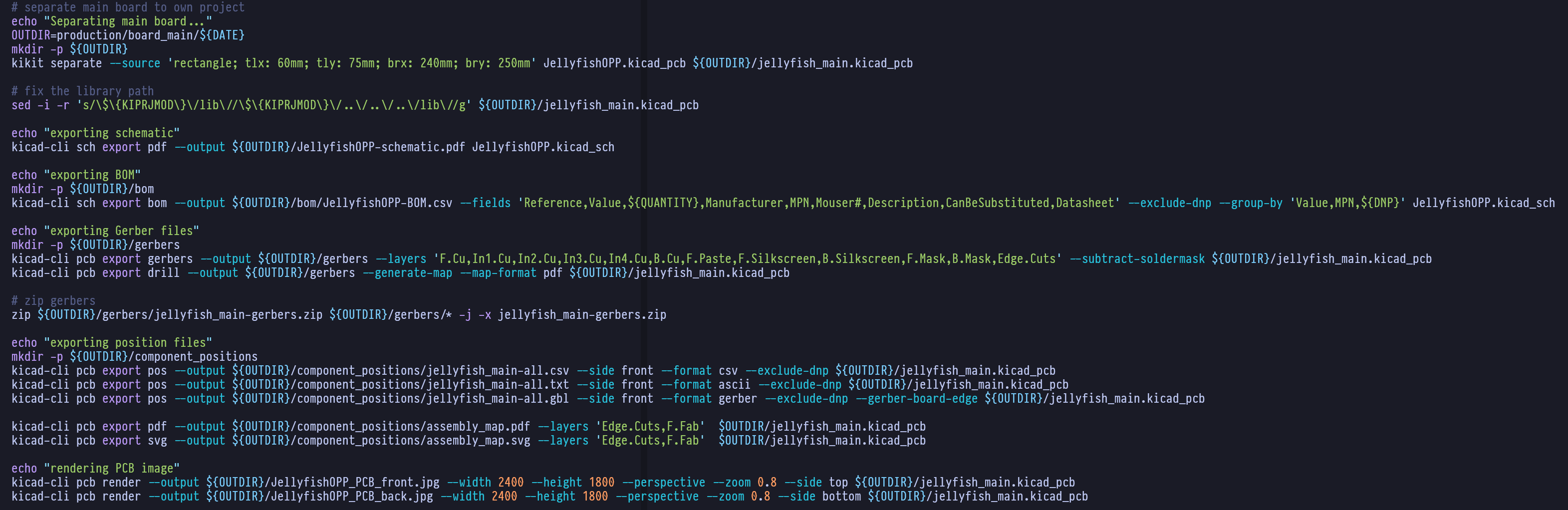 After the changes and checks were done I took an opportunity to improve the prepare_everything.sh script to remove the need for any manual steps. Now it does the full manufacturing preparation for the board, all using the KiKit and KiCAD's CLI interface: